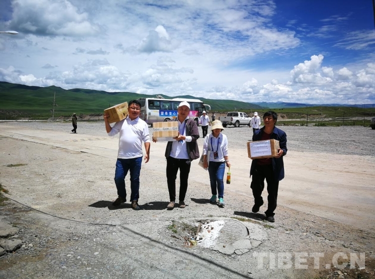 圖為2018年企業(yè)愛(ài)心志愿者前往瑪曲縣貧困群眾家,發(fā)放一對(duì)一幫扶因病返貧家庭的生活物資