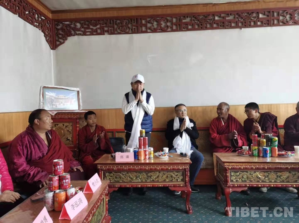 圖為席庸(左三)跟隨“同心?共鑄中國心”中醫(yī)藥雙車行醫(yī)療團隊來到達日縣查朗寺義診