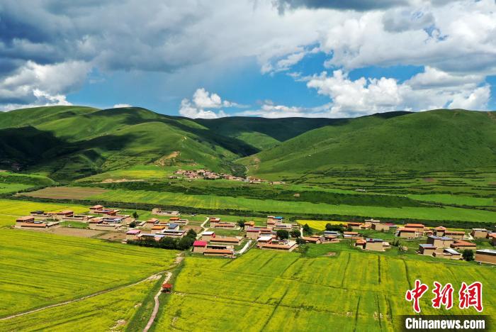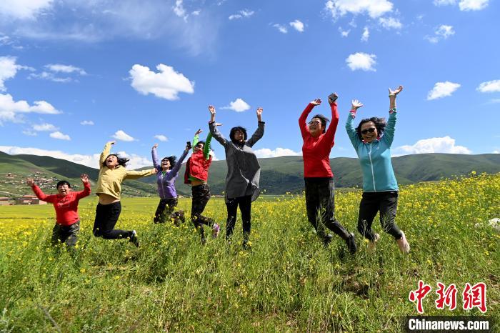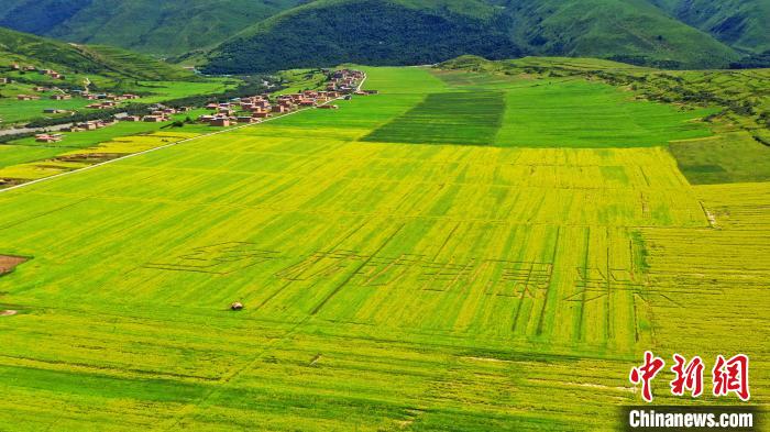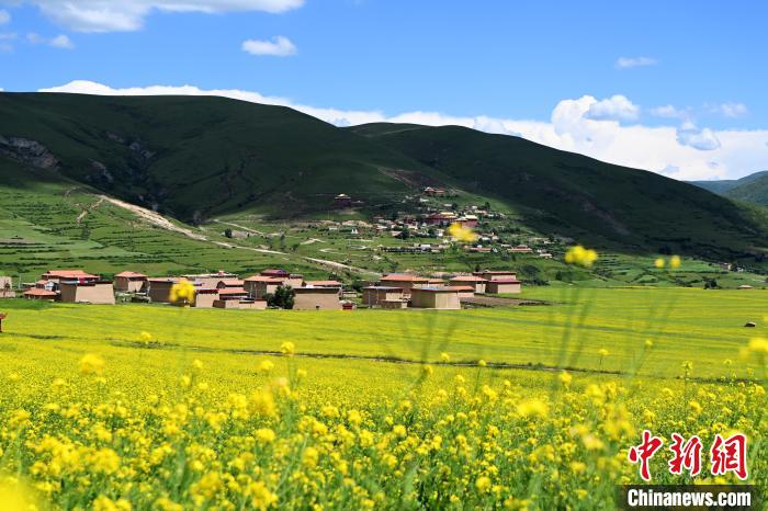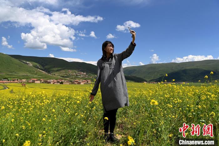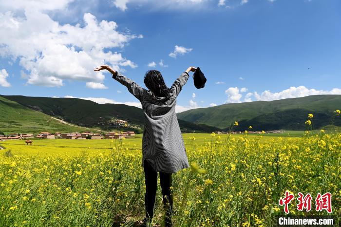 7月21日,四川省阿壩藏族羌族自治州阿壩縣麥昆鄉(xiāng)蠶不扎村高原油菜核心示范基地內(nèi),盛開的萬畝高原油菜花海吸引游客前來觀光打卡。