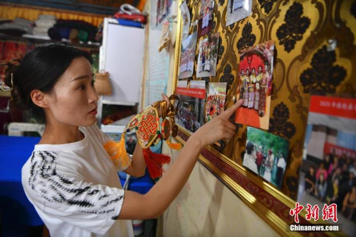7月22日,提美的女兒邊宗向記者介紹她制作的配飾。中新社記者 劉冉陽(yáng) 攝