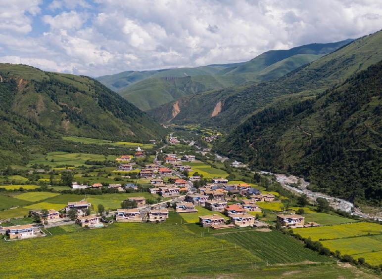 7月25日拍攝的道孚縣鮮水鎮(zhèn)風(fēng)光(無人機照片)。新華社記者 江宏景 攝