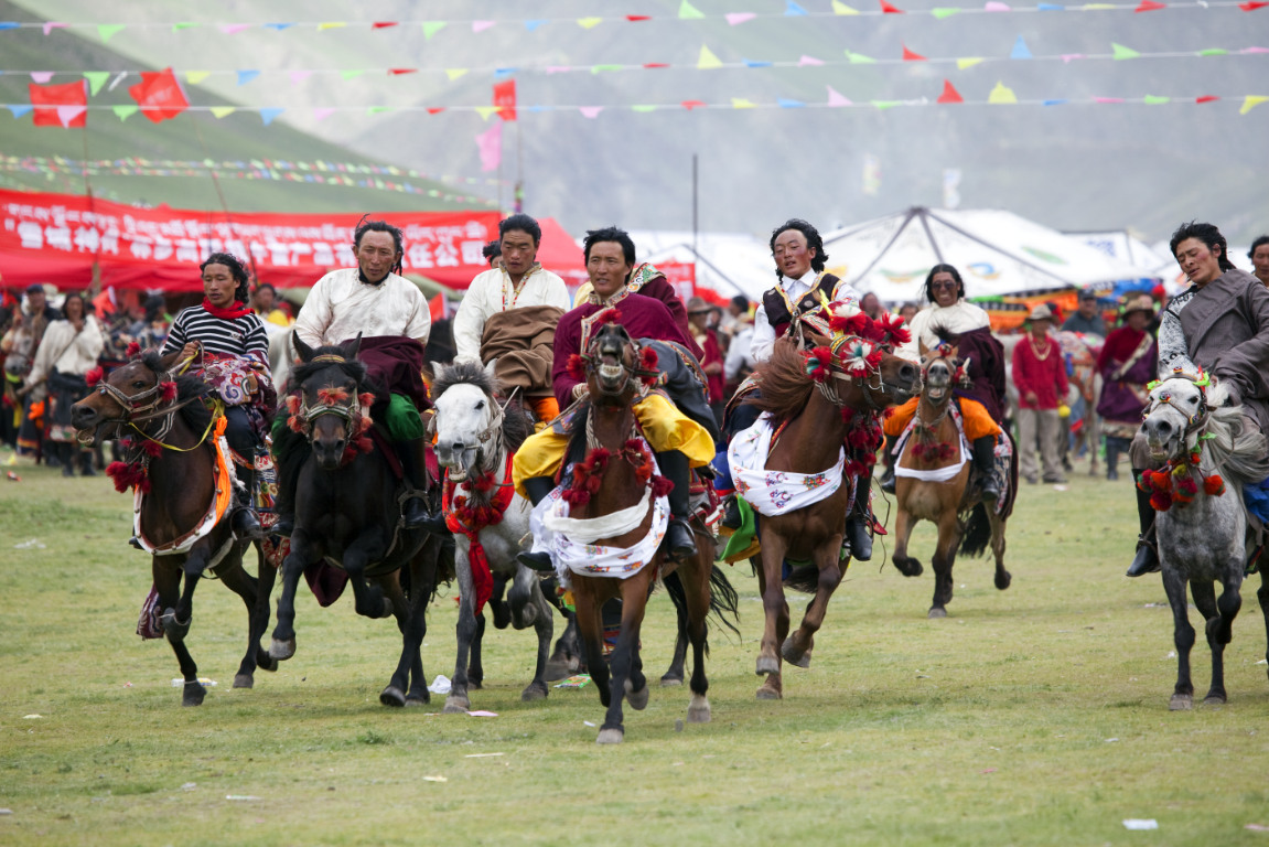 圖為群眾歡慶一年一度的賽馬節(jié)。