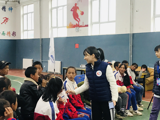 給孩子上課的6名小老師都來(lái)自“同心·共鑄中國(guó)心”青海果洛行成長(zhǎng)營(yíng)公益項(xiàng)目,均是志愿者子女,平均年齡18歲。