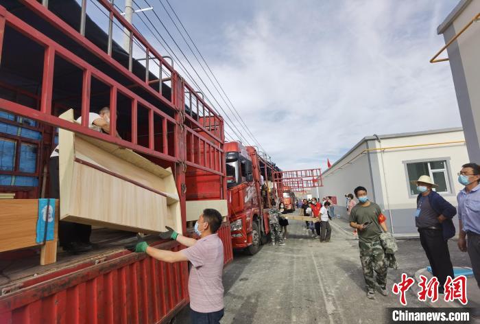在夕陽的余暉漸漸離開院子時,45歲的劉張生一家五口人在工作人員和志愿者的幫助下,終于將大批家具和行李拆包后分門別類地歸置于屋內(nèi)。他們把看起來有些年頭的沙發(fā)、茶幾等老家具,在客廳陳設(shè)上特意布置成“老家”原來的樣子,以此淡化“思鄉(xiāng)的情緒”。
