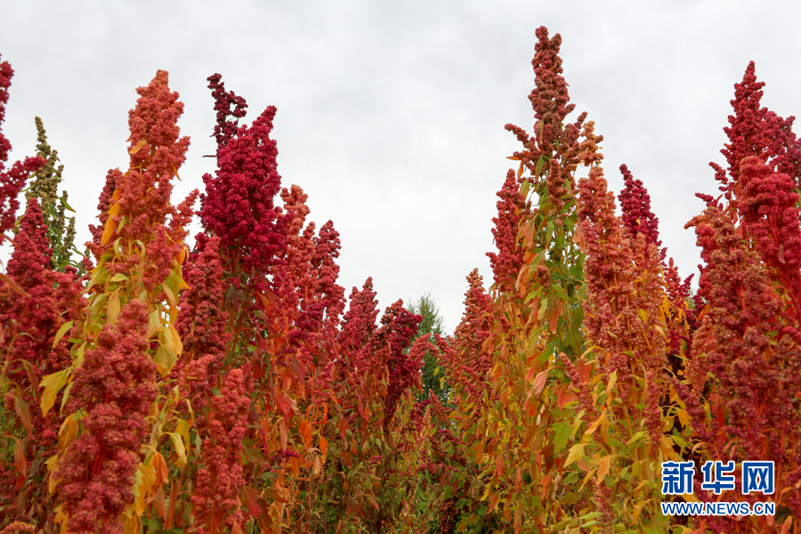 成熟的藜麥好似翻滾的紅色波濤。新華網(wǎng) 卡婭梅朵 攝