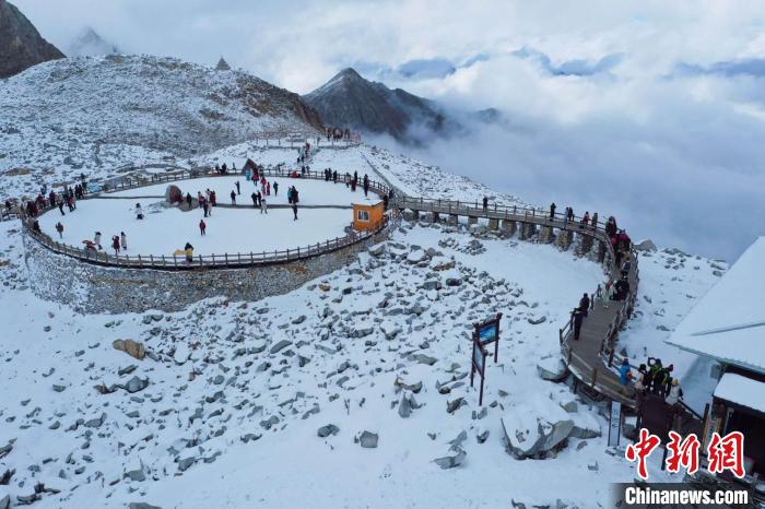 游客在達古冰川游覽。肖蓉 攝