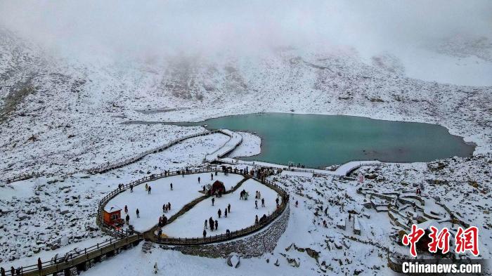航拍達古冰川美麗的淚湖。肖蓉 攝