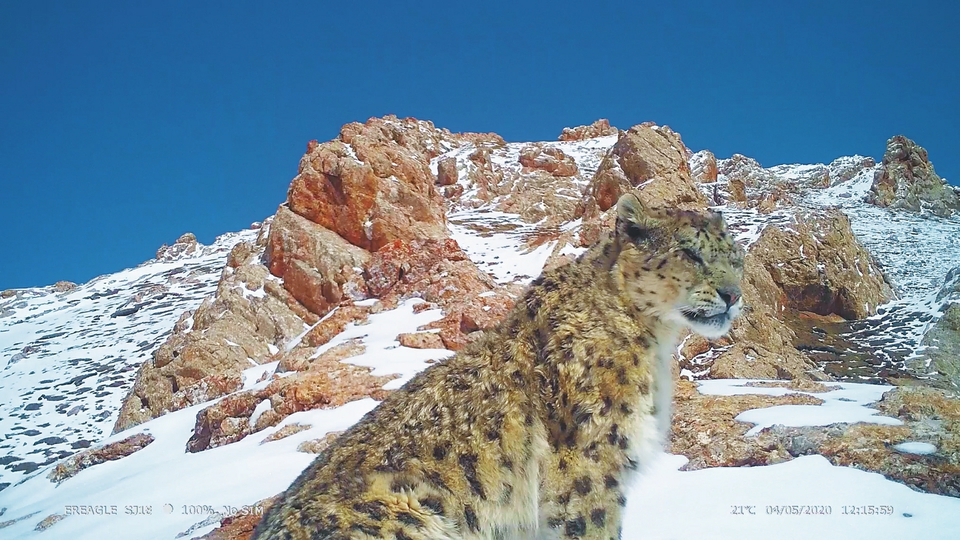 紅外相機(jī)拍攝到的雪豹。山水自然保護(hù)中心供圖