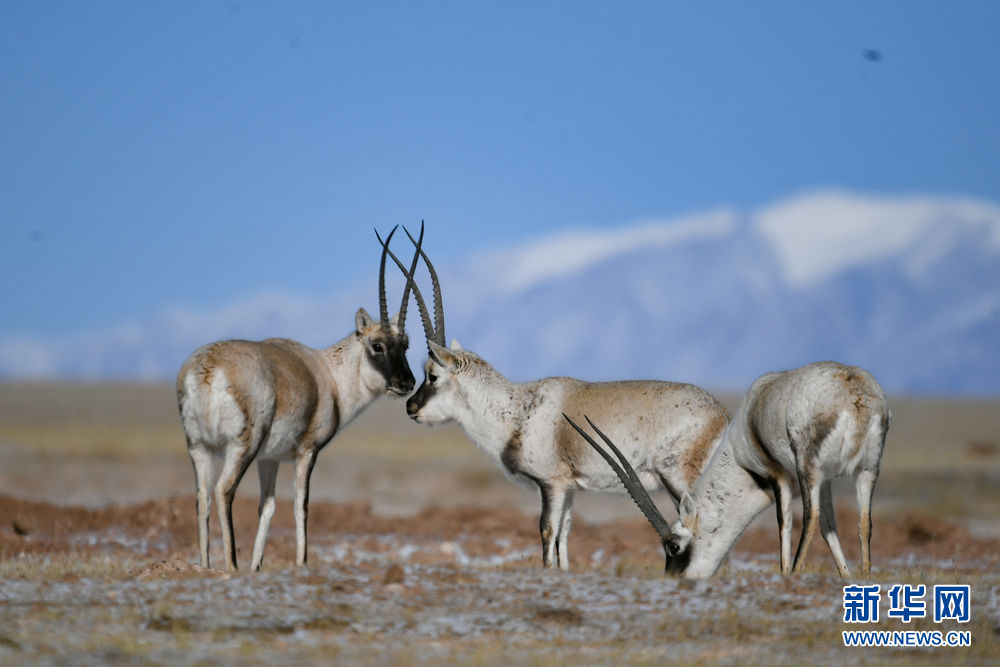 隆冬時節(jié),藏羚羊、野牦牛、藏野驢等“高原精靈”在可可西里覓食嬉戲??煽晌骼锟偯娣e4.5萬平方公里,平均海拔4600米以上,蘊藏著豐富的野生動物資源。2016年,可可西里國家級自然保護(hù)區(qū)整體劃轉(zhuǎn)至三江源國家公園,成為三江源國家公園的重要組成部分。