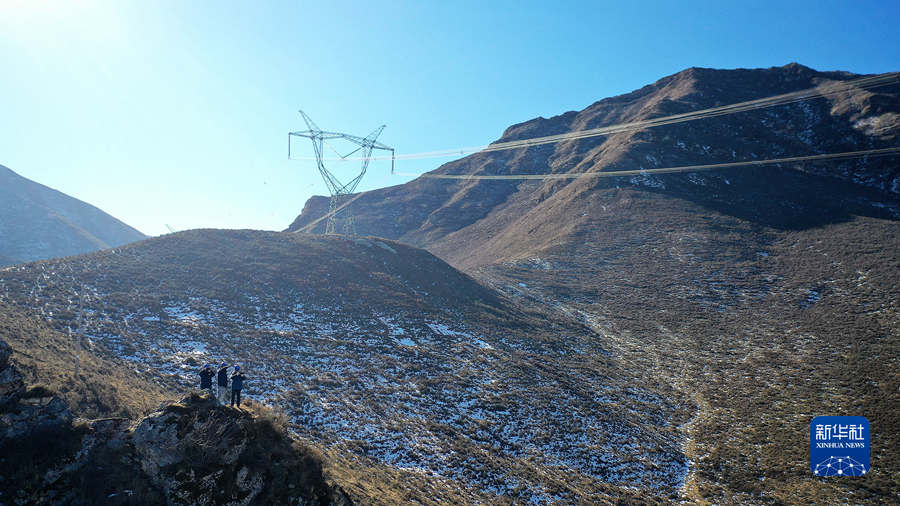 1月19日,國家電網(wǎng)青海省電力公司檢修公司輸電檢修中心專業(yè)班組成員在巡線途中。新華社記者 趙玉和 攝