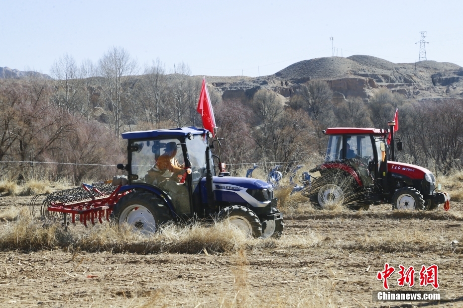2月24日,藏族村民正在進(jìn)行機(jī)械耕作。中新社記者 馬銘言 攝