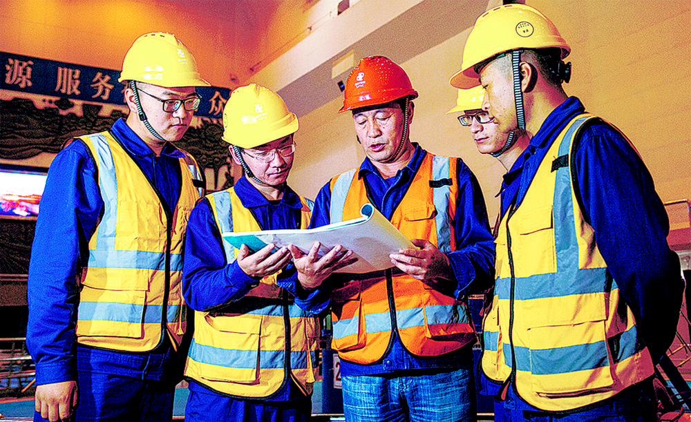 水電站工作人員檢修水電機(jī)組。張勇 攝