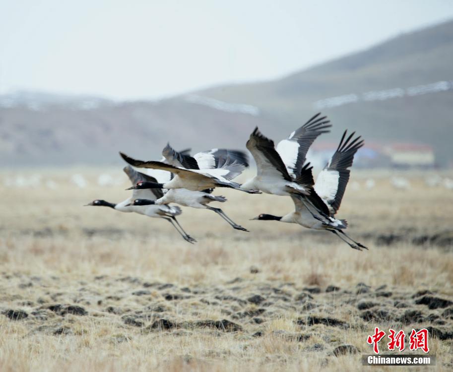 近日,百余只黑頸鶴集群在四川省阿壩藏族羌族自治州若爾蓋國家級自然保護(hù)區(qū)熱曲河畔追逐、休憩,它們將在這里慢慢建立各自的領(lǐng)域并進(jìn)入繁殖期。春季,是各種越冬鳥兒返回繁殖地的季節(jié)。在四川若爾蓋國家級自然保護(hù)區(qū)內(nèi),2000余只黑頸鶴,由以前的候鳥變成了留鳥,在當(dāng)?shù)囟ň拥?1月后離開,目前已進(jìn)入繁殖期。