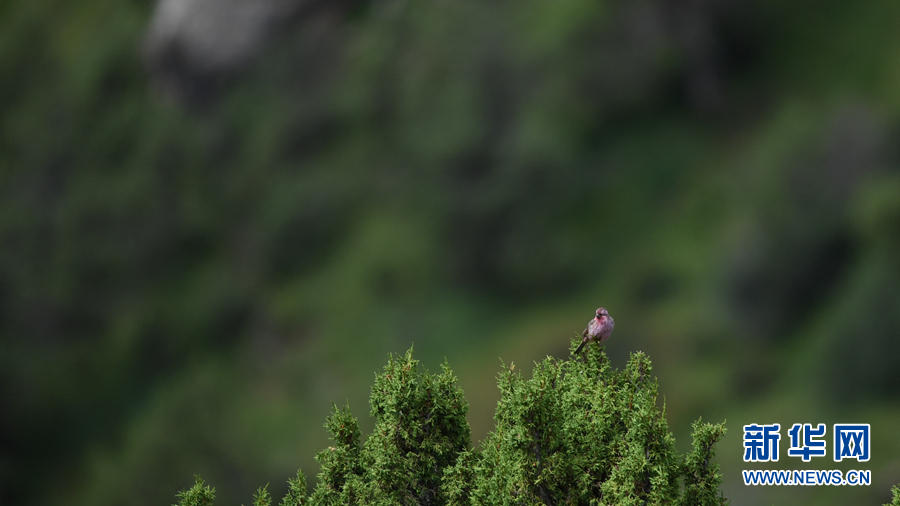 在青海省玉樹藏族自治州囊謙縣境內拍攝到的曙紅朱雀(雄)。