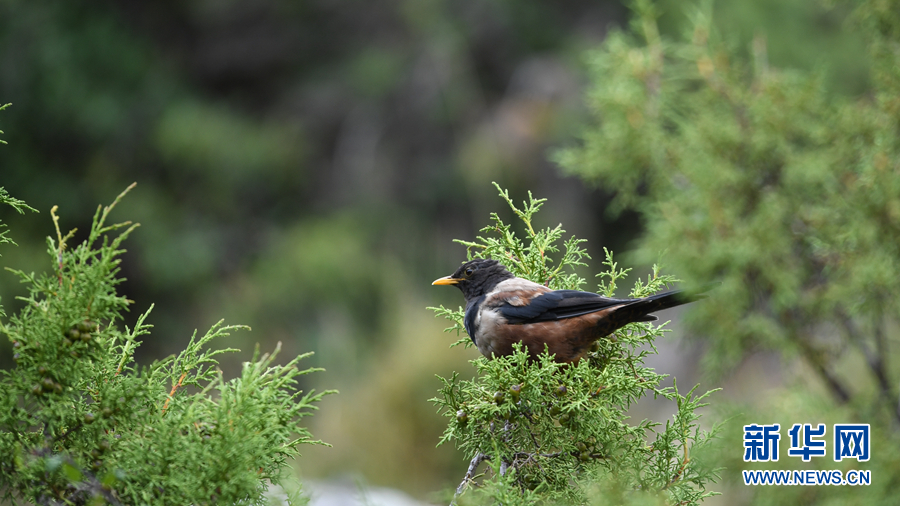 在青海省玉樹藏族自治州囊謙縣境內拍攝到的棕背黑頭鶇。