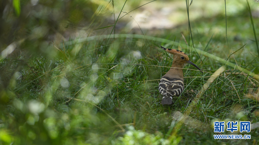 在青海省玉樹藏族自治州通天河畔勒巴溝拍攝到的戴勝。新華網 潘彬彬 攝