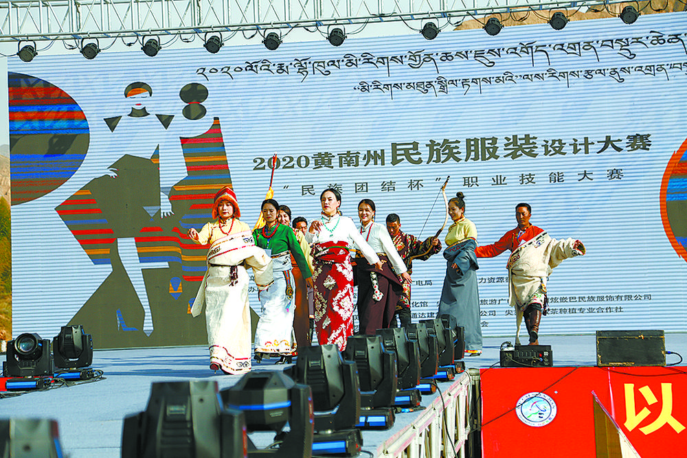 民族服飾展演走上T臺,多元文化展現(xiàn)”中華民族一家親”理念。