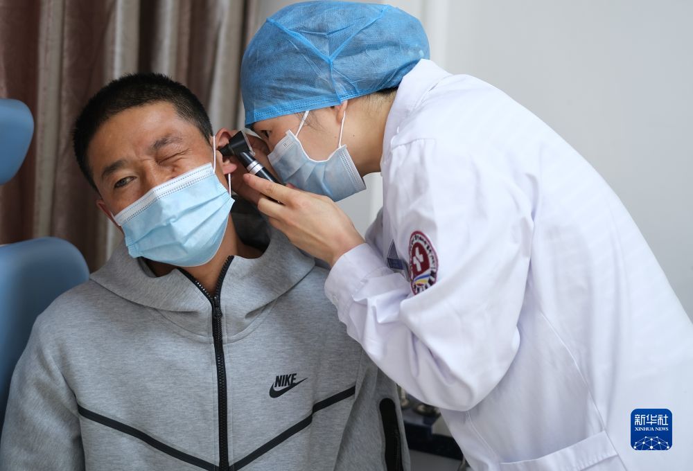 青海省人民醫(yī)院醫(yī)生、青南支醫(yī)隊員王菲在玉樹藏族自治州人民醫(yī)院給患者進(jìn)行檢查。新華社記者 韓方方 攝