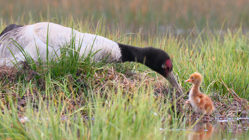 祁連山國家公園里黑頸鶴一家的幸福生活