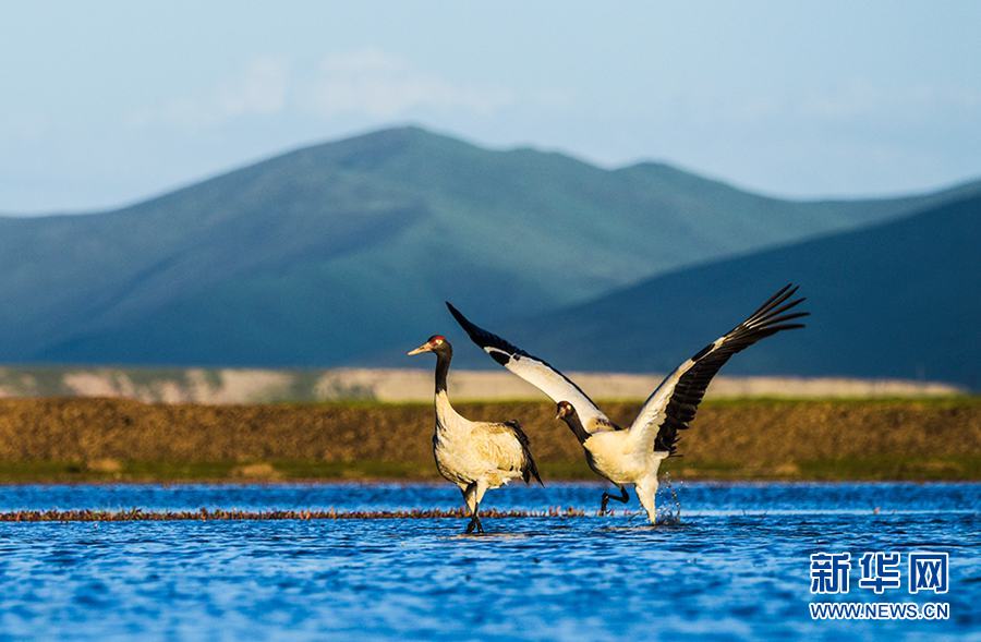 在距污水處理廠不遠的濕地中,黑頸鶴時而低頭涉水覓食,時而遨游天際。才項南加的鏡頭跟隨黑頸鶴移動,他轉(zhuǎn)過頭說:“污水廠水排放達標(biāo),污水變凈水,黑頸鶴才會在這里駐足!”