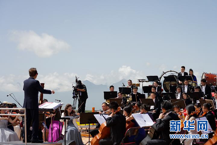 7月9日,交響樂(lè)團(tuán)在指揮下演奏曲目。新華社記者陳杰 攝