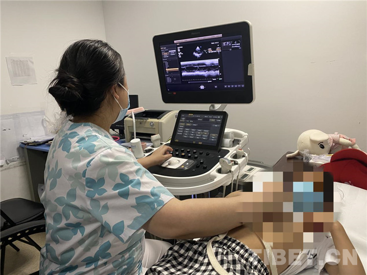 圖為丁文虹副主任為患者進行術(shù)前心臟超聲檢查