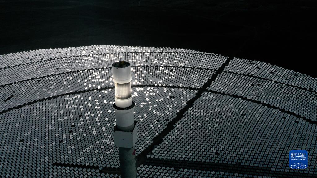 這是位于青海省海南藏族自治州共和縣光伏產(chǎn)業(yè)園內(nèi)一處塔式光熱發(fā)電項(xiàng)目(2021年3月3日攝,無人機(jī)照片)。新華社記者 張宏祥 攝