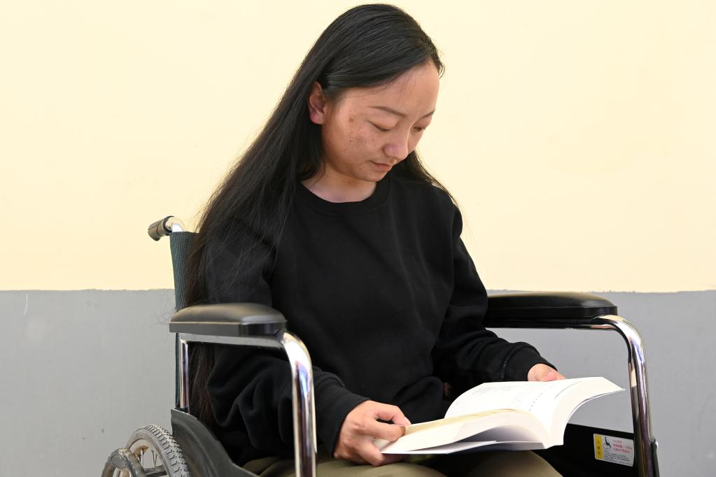 8月9日,仁增卡卓坐在輪椅上看書。新華社記者 范培珅 攝