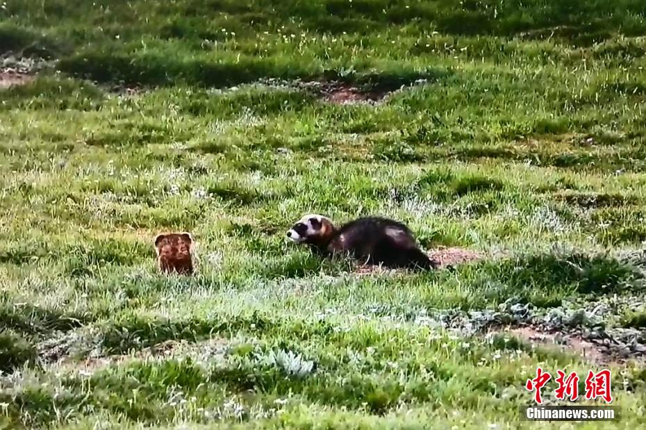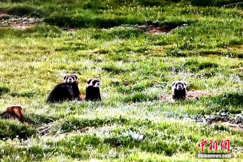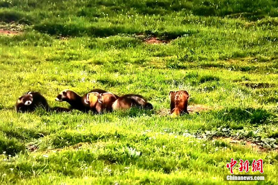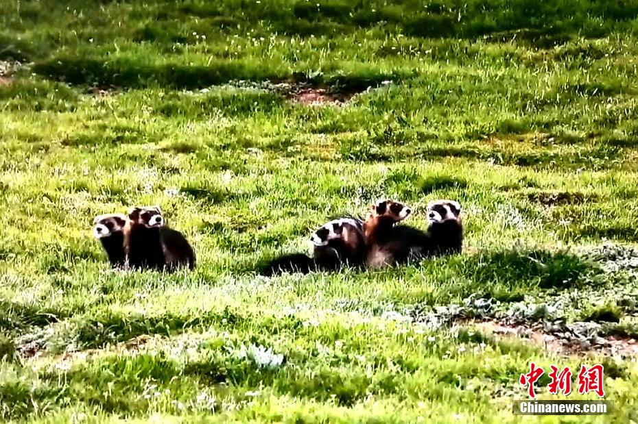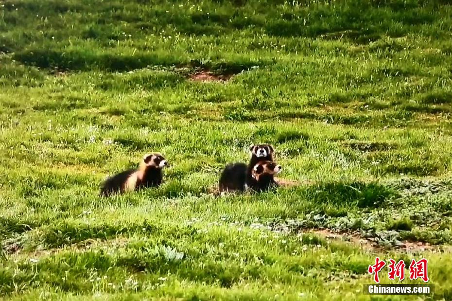 青海祁連草原綠意盎然 黑河源頭艾鼬一家愜意生活