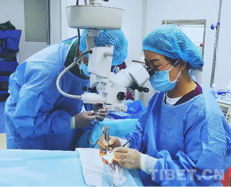 白內(nèi)障手術持續(xù)了4天,手術主要由郭娟主任醫(yī)師、胡茵副主任醫(yī)師、朱敬主治醫(yī)師、張芝琳醫(yī)師和格乃桑登醫(yī)師共同完成,為了弘揚“傳幫帶”精神,郭娟親自指導當?shù)匮劭漆t(yī)師——格乃桑登為患者完成了一臺白內(nèi)障手術。