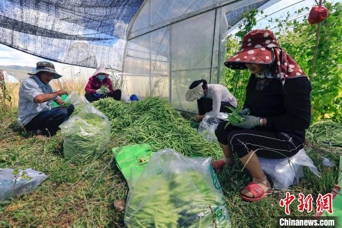 八月中旬,在四川省阿壩藏族羌族自治州壤塘縣的熱布卡蔬菜基地,五月種植的第一批四季豆(學名菜豆,下同)正值豐收。50歲的陳老會年初從云南來到四川壤塘工作,她和工友們將剛采摘的四季豆篩選裝袋,近五十斤重的包裝袋整齊鋪滿地面?!拔覀兿挛绮烧氖卟耍诙煸缟暇湍艹霈F(xiàn)在成都的市場上?!彼^也不抬地忙著手中的活。
