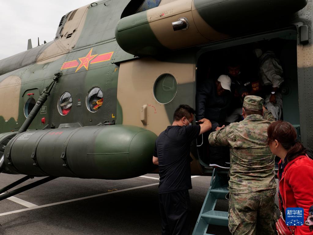 9月6日,西部戰(zhàn)區(qū)空軍某部緊急出動直升機在瀘定縣轉(zhuǎn)移群眾。新華社發(fā)(胡建軍 攝)