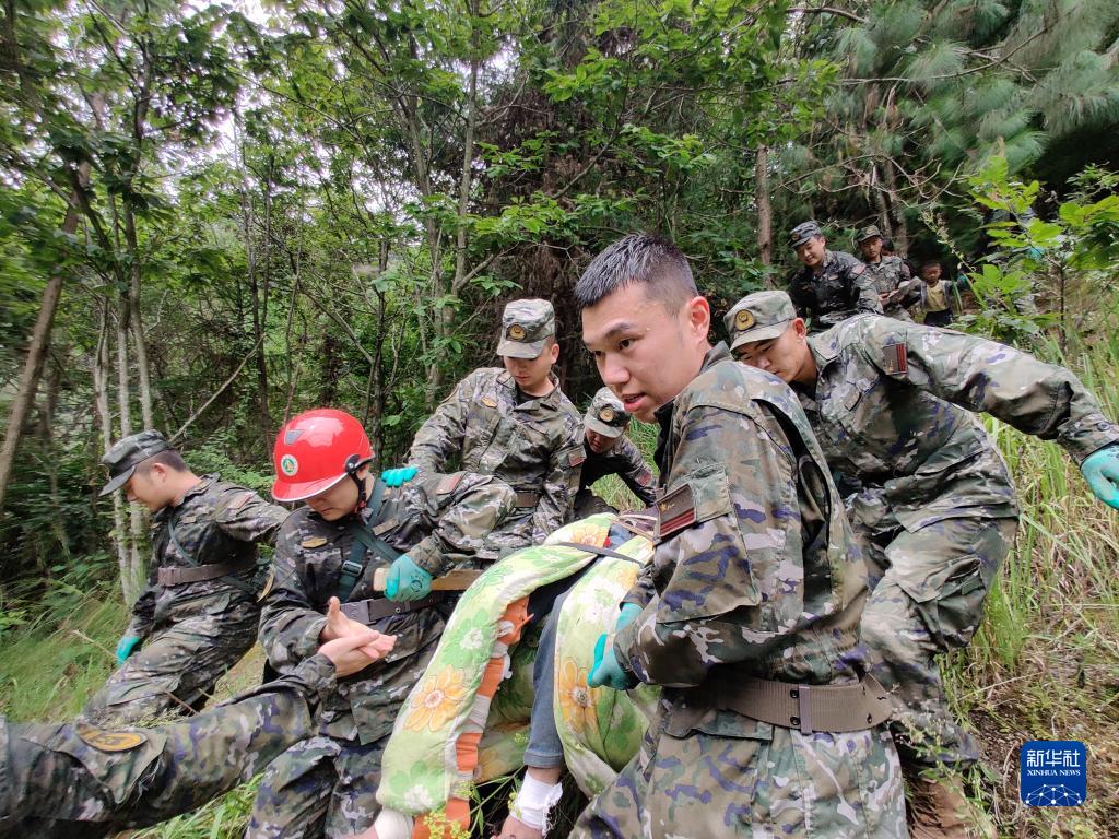 9月6日,武警四川總隊雅安支隊官兵在雅安市石棉縣王崗坪鄉(xiāng)轉(zhuǎn)移受傷人員。新華社發(fā)(李熠 攝)