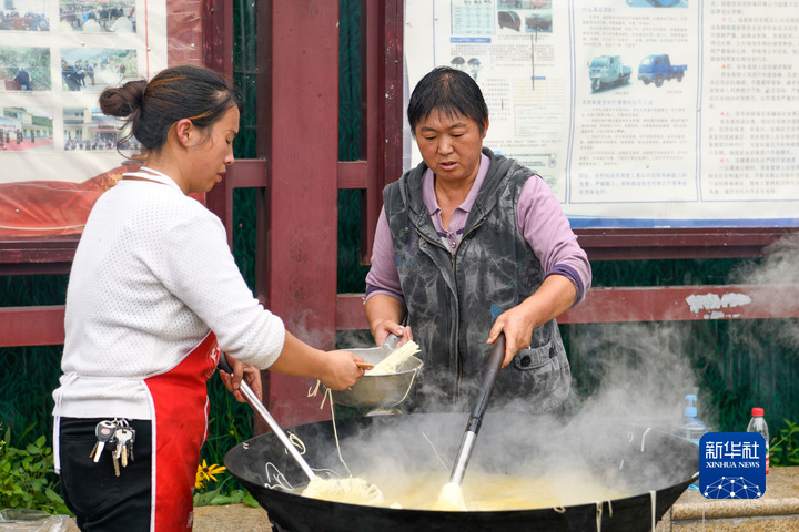 9月6日,在位于四川省雅安市石棉縣王崗坪鄉(xiāng)挖角村村委會的安置點,村民在安置點內(nèi)架起鍋灶,生火做飯,為安置點里的鄰里鄉(xiāng)親準(zhǔn)備餐食。