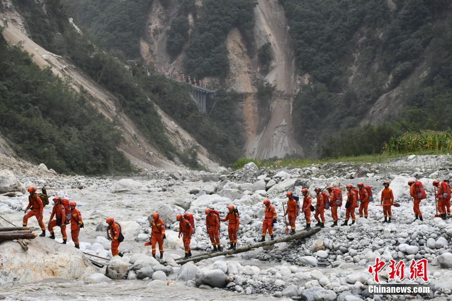 9月6日,四川甘孜州瀘定縣磨西鎮(zhèn),甘孜州森林消防支隊(duì)康定中隊(duì)隊(duì)員徒步深入山區(qū)開展救災(zāi)工作。9月5日,四川瀘定發(fā)生6.8級(jí)地震。 中新社記者 張浪 攝