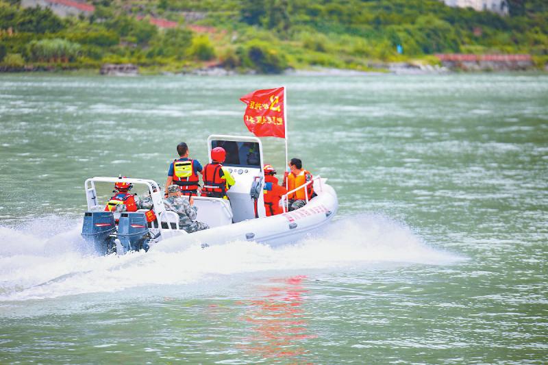 大渡河畔 救援隊伍水陸并進奔赴災(zāi)區(qū)