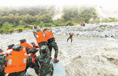 一幕幕救援場景,令億萬網(wǎng)友動容:面對湍急的河水,特警隊員用身體和繩索搭起“生命橋”,全力轉(zhuǎn)移被困群眾;面對橋梁垮塌,森林消防員自制擔(dān)架、木橋,抬傷員過河……