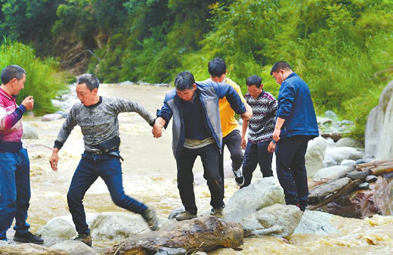 沿途有3個(gè)幾近垂直的斜坡,一行人只能緩緩下蹲、降低重心移過(guò)去。還有布滿泥沙和落石的河流,雖然有橋,但并不安全?!拔覀儞靵?lái)木板、樹(shù)干和石頭,搭起簡(jiǎn)易通道,才成功渡過(guò)?!崩铨堈f(shuō)。