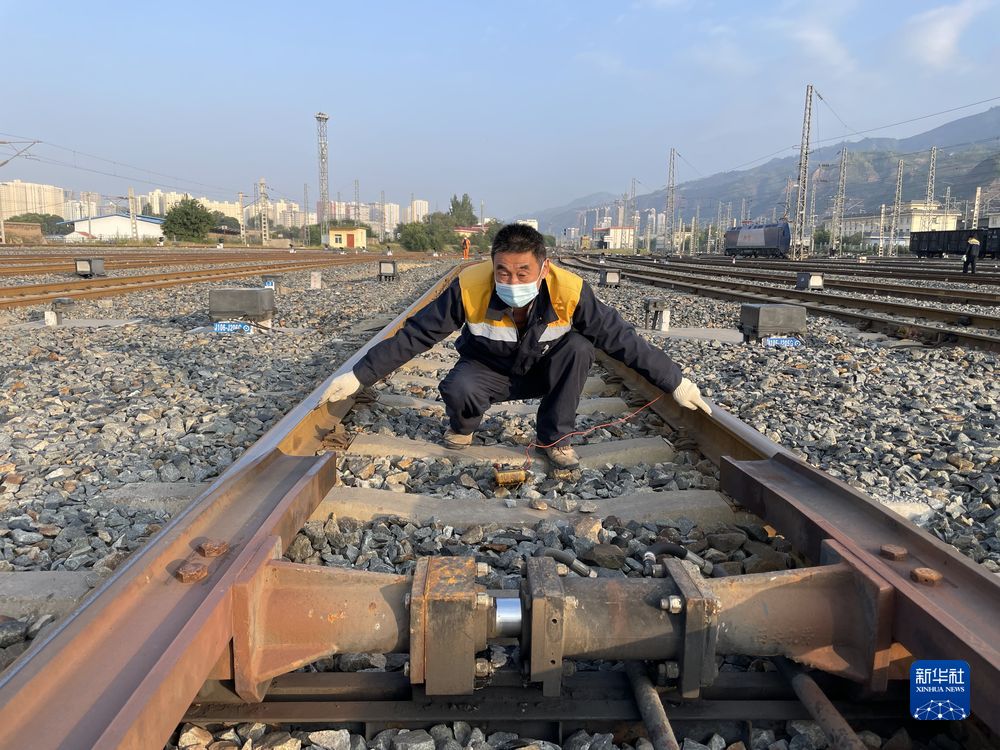 圖為西寧電務(wù)段駝峰信號(hào)工區(qū)工長(zhǎng)張金玉測(cè)試信號(hào)設(shè)備。新華社發(fā) 李紅蘭 攝