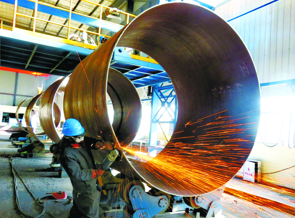 在青海華匯新能源有限公司的生產(chǎn)車間里,工人正在切割制作風力發(fā)電組件。蘇烽 攝