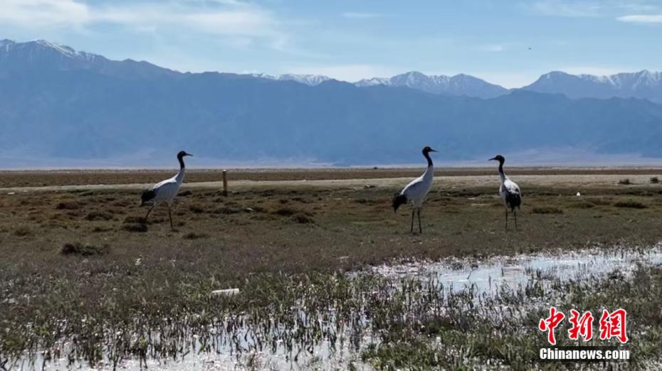 柴達(dá)木盆地烏蘭東大灘濕地現(xiàn)“鳥類大熊貓”黑頸鶴
