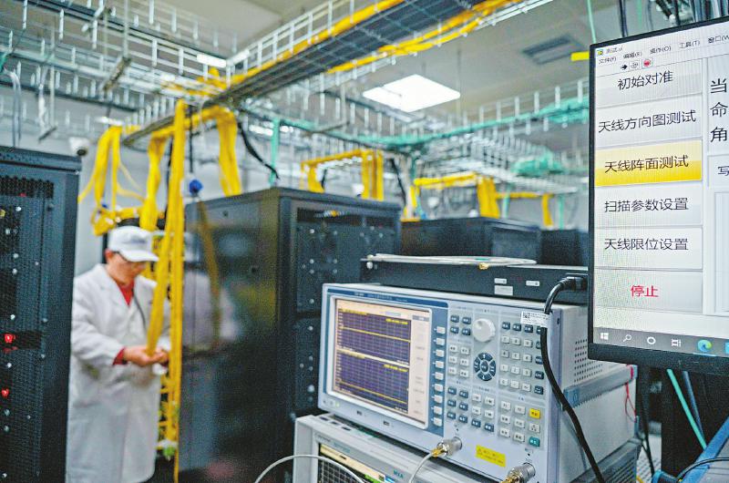2022年10月28日 科研人員在調試圓環(huán)陣太陽射電成像望遠鏡系統(tǒng)設備。