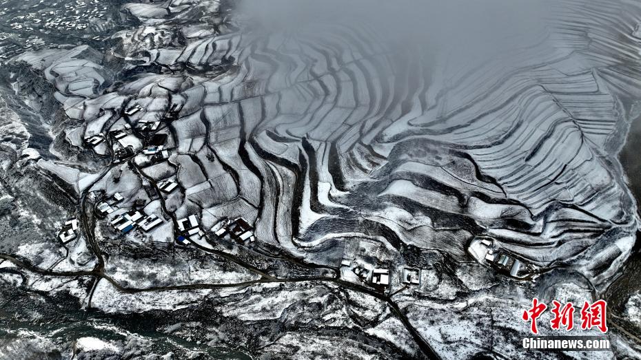 連日來,坐落在黃河岸畔的青海省海東市化隆縣雄先藏族鄉(xiāng)、查甫藏族鄉(xiāng),迎來降雪。雪后航拍藏族傳統(tǒng)村落和山區(qū)梯田,阡陌交通,加之云霧繚繞,宛如仙境。