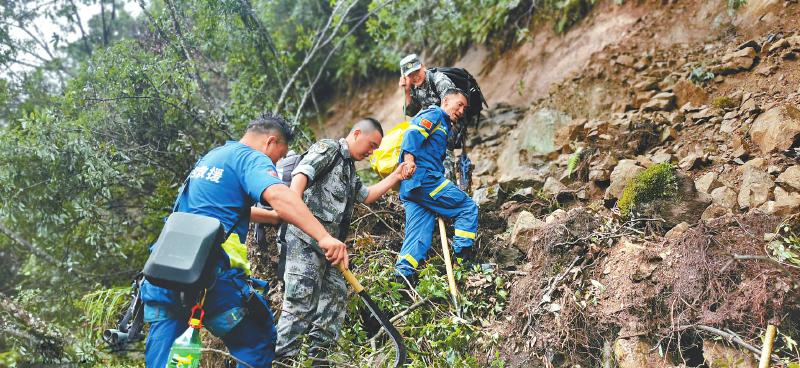 其實張自立背后還有一群“汶川哥哥”,四川森林消防總隊阿壩支隊汶川大隊參與瀘定地震救援的一共74人,他們中很多都來自汶川,平均年齡在二十七八歲,小時候都經(jīng)歷過汶川地震。“因為我經(jīng)歷過地震,我知道當?shù)氐娜嗽诘戎覀儭⑴沃覀?,我要盡快趕到他們面前?!睋岆U救災,時間就是生命。沒有橋,就用皮劃艇將救援人員送到山腳;沒有路,就徒手爬山進村展開搜救,隊員們分秒必爭,以最快的速度趕到受災群眾身邊,不僅及時提供了專業(yè)救援,更為受災群眾注入了戰(zhàn)勝困難的信心。