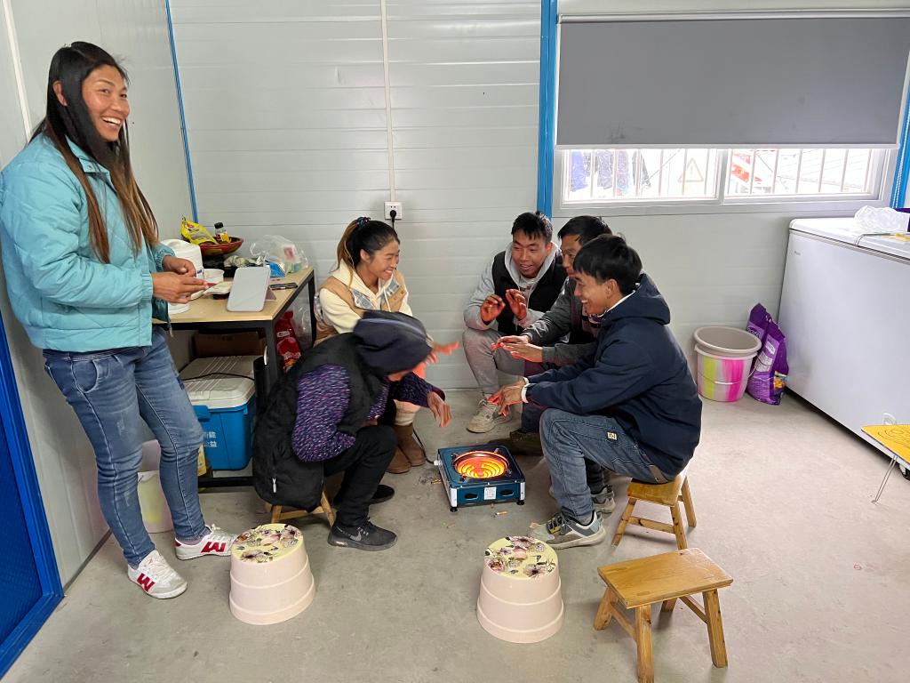 記者來到得妥鎮(zhèn)繁榮過渡安置點(diǎn)時(shí),正逢群眾集體上山干農(nóng)活。此時(shí)川西高原氣溫已很低,山上下著雪,云霧繚繞。留在安置點(diǎn)內(nèi)的婦女、老人較多,正在室內(nèi)準(zhǔn)備午飯或打掃衛(wèi)生。