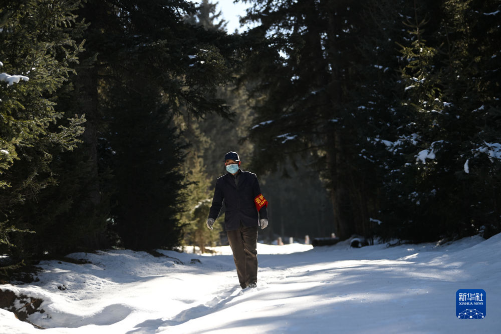 2022年11月23日,護林員在西寧市大通回族土族自治縣東峽林場內(nèi)巡護。新華社記者 張龍 攝