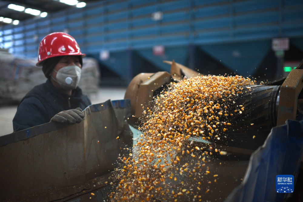 1月12日,青海省剛察縣一家飼料生產(chǎn)企業(yè),工作人員在生產(chǎn)線旁查看原料。新華社記者 張宏祥 攝