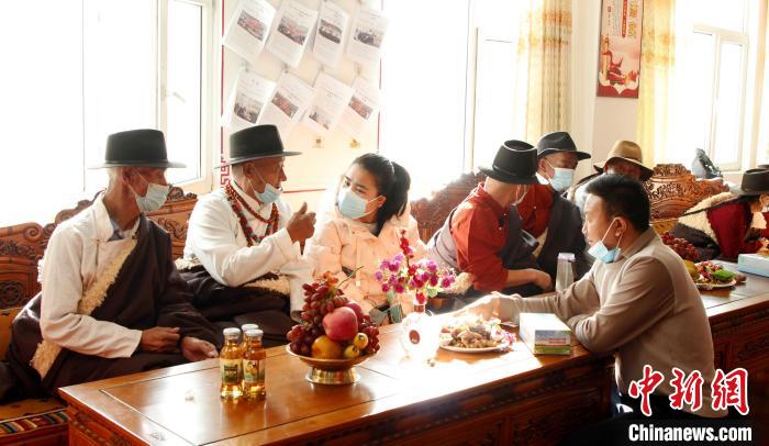 圖為同仁市社會福利服務中心的老年人講述自己的生活。馬芝芬 供圖