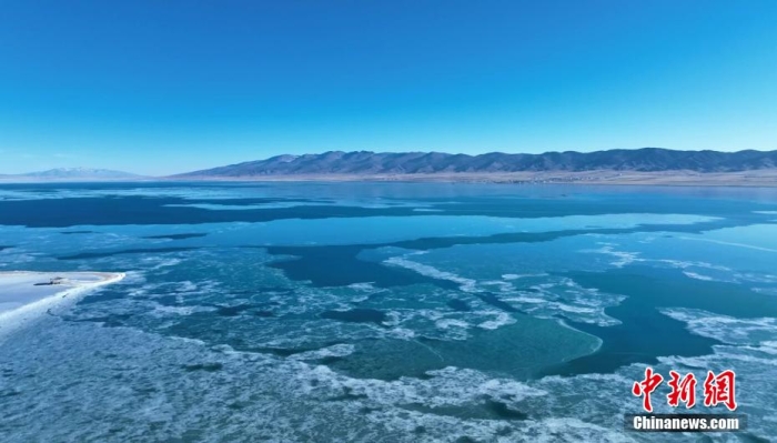 圖為青海湖已由岸邊向湖心漸次封凍。史國成 攝