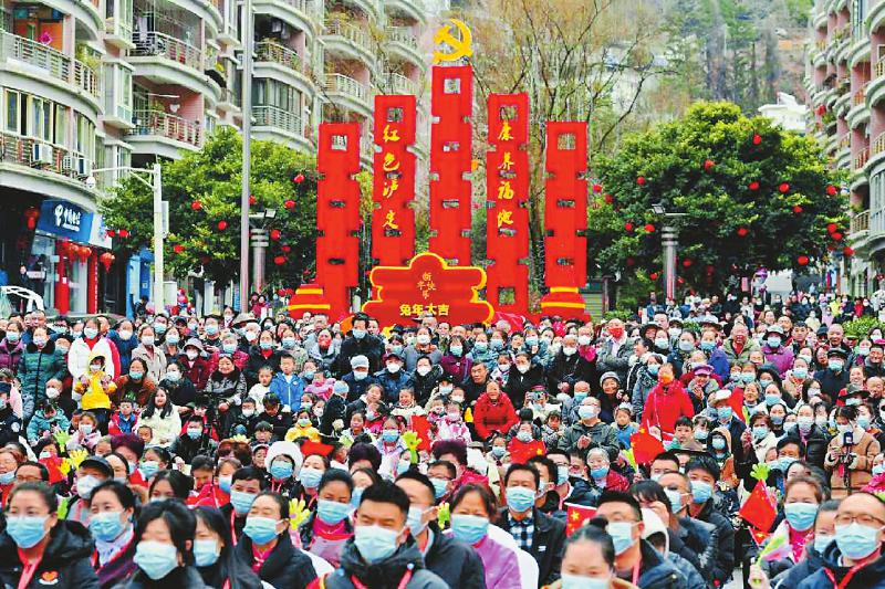 2月7日,四川省甘孜州瀘定縣瀘定橋廣場上,人們載歌載舞,歡聲笑語,熱鬧非凡;而另一側(cè)的廣場上,同樣排著長隊,全省21家省直部門布展送科技下鄉(xiāng)。[詳細(xì)] -